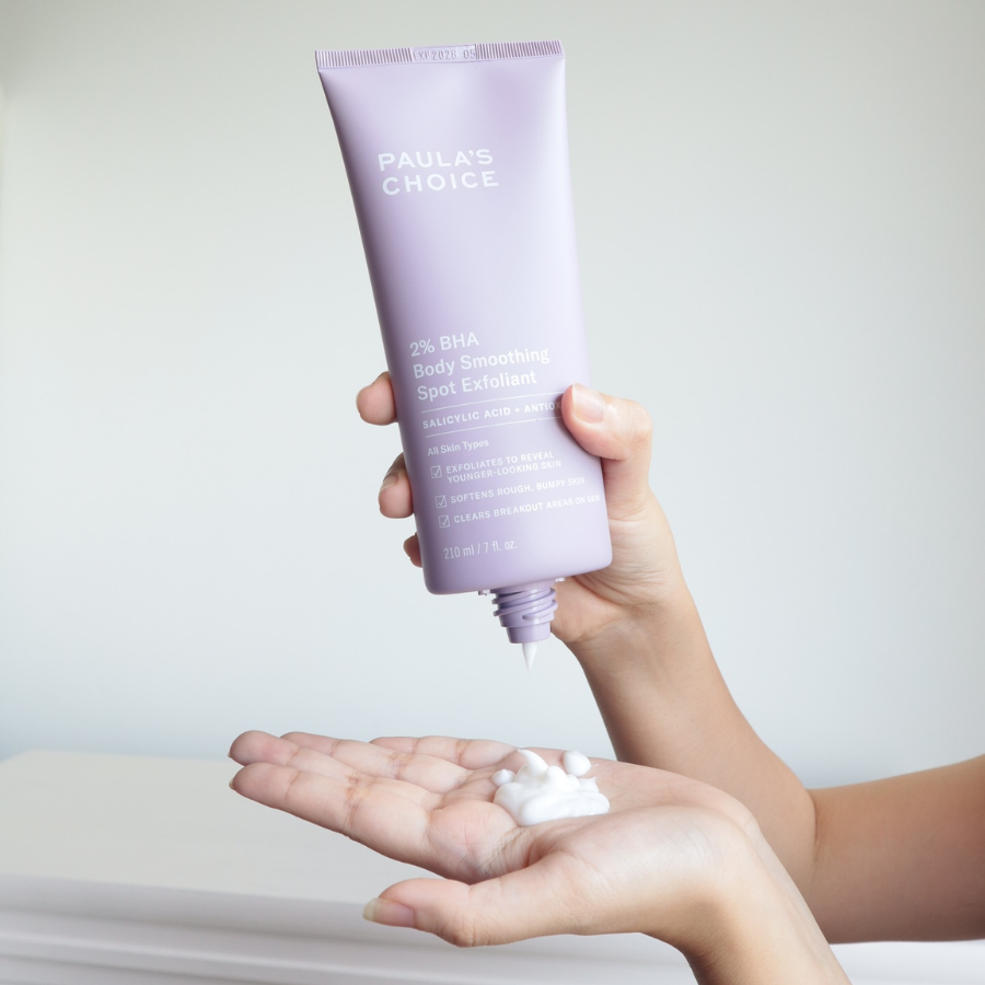 - 2% BHA: Thấm sâu làm sạch lỗ chân lông, giảm mụn lưng, sần sùi vùng mông – bắp tay, cải thiện tình trạng dày sừng nang lông.