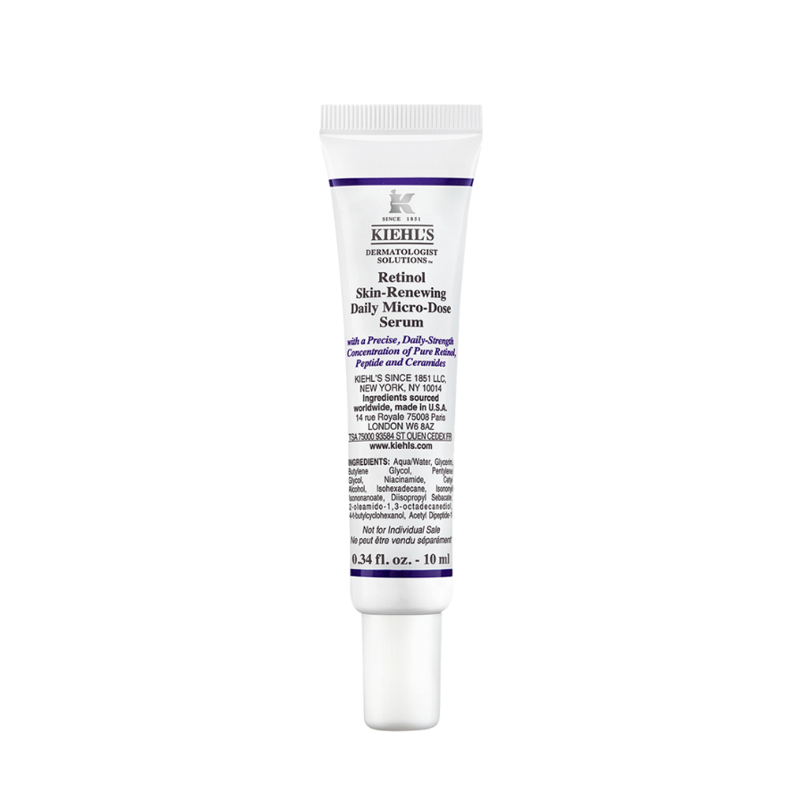 Retinol Kiehl’s Skin Renewing Daily Micro‑Dose là tinh chất retinol nhẹ nhàng hàng ngày giúp tái tạo da, giảm nếp nhăn li ti và cải thiện tông màu da mà vẫn giữ được sự dịu nhẹ, phù hợp cả da nhạy cảm khi bắt đầu dùng retinol. Công thức micro‑dose giúp da quen dần với retinol mà không gây khô căng hay kích ứng mạnh.