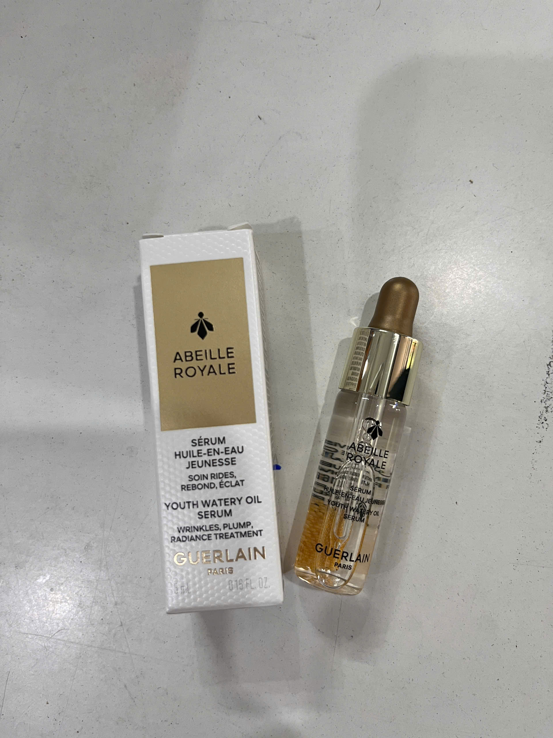 Guerlain Abeille Royale Youth Watery Oil 5ml là serum cao cấp kết hợp dầu – nước độc quyền, chứa mật ong ong chúa giúp phục hồi, tái tạo da, tăng độ đàn hồi và làm mịn da rõ rệt.